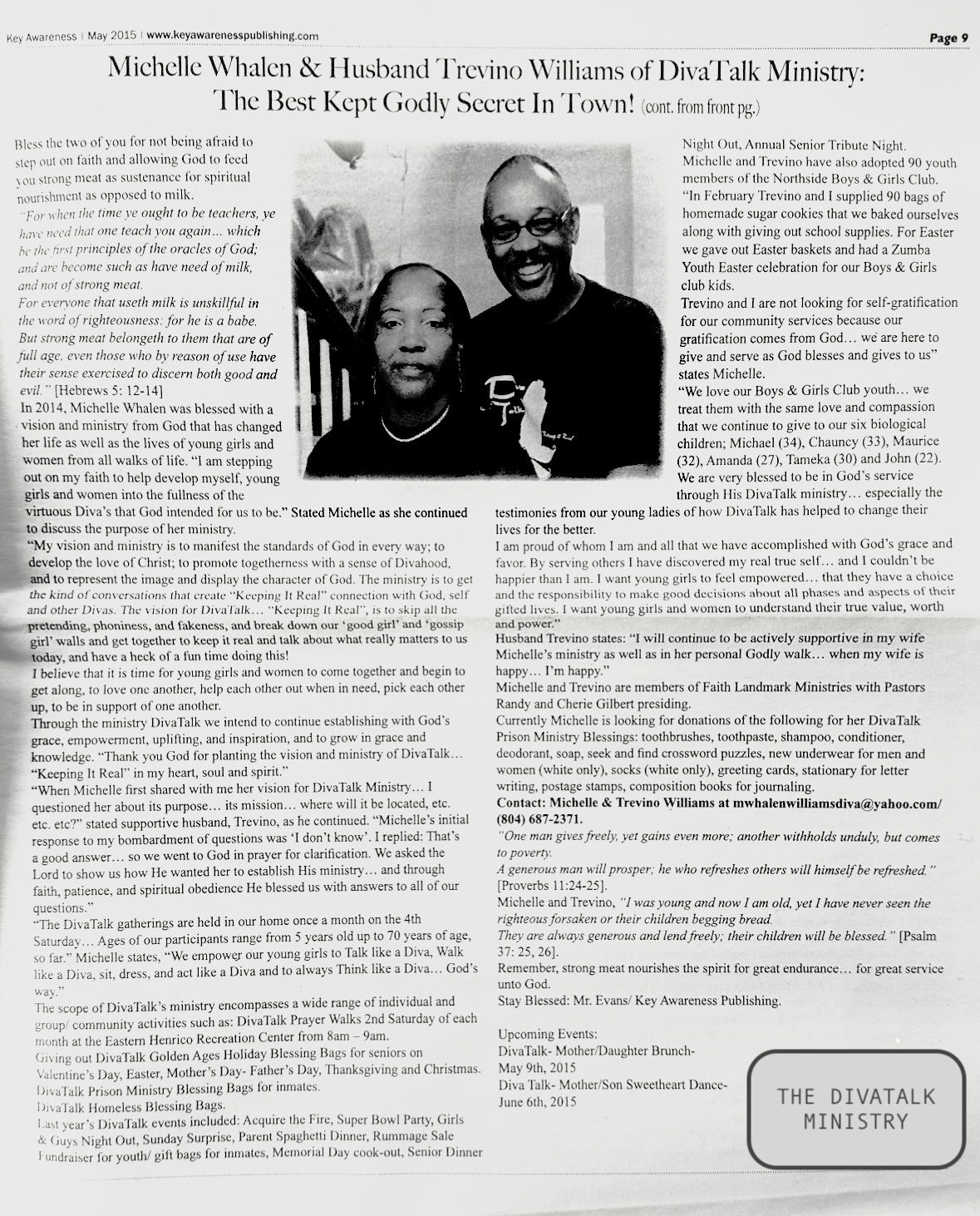 When God came up with the vision and ministry for DivaTalk...”Keeping It Real,” for the Empowerment of Young Girls and Women of God, He didn’t look for the most qualified. He chose someone who loved Him, someone who had been through verbal and physical abuse, someone who would work hard, someone who had a passion and desire to help young girls and women become better versions of themselves, along with her, and someone who was determined to please God.